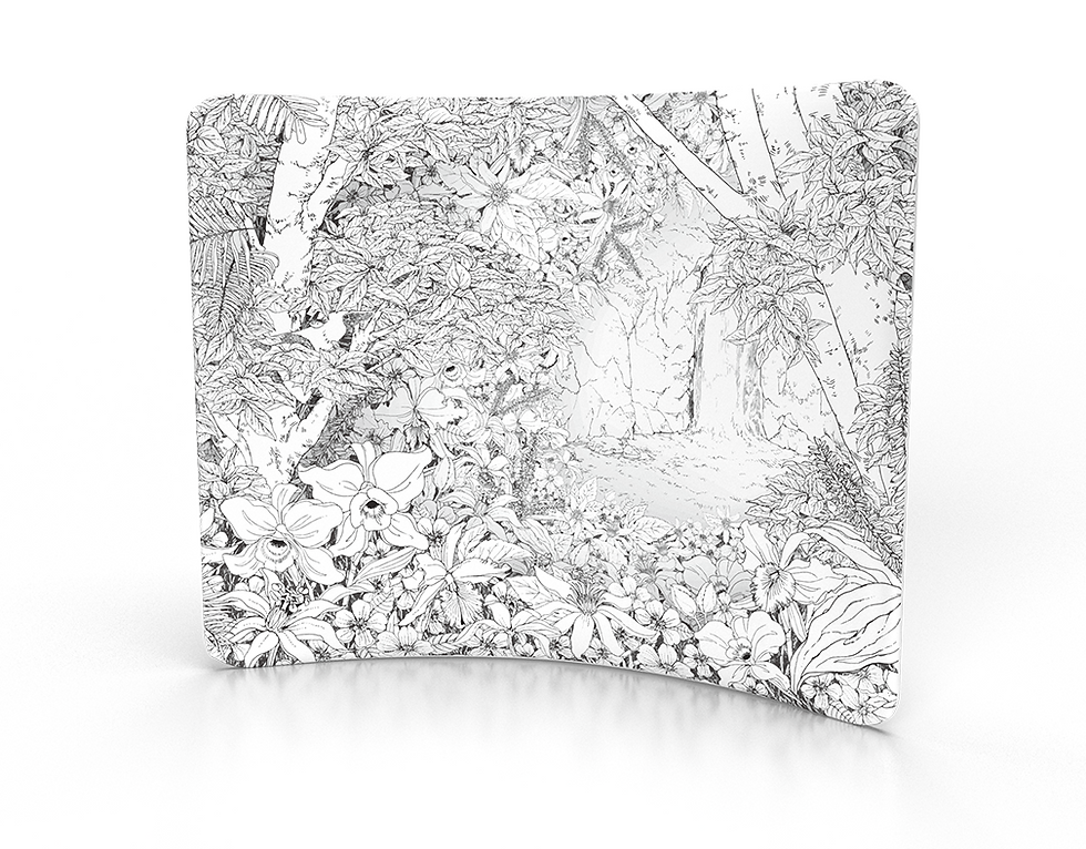 南の国のどこかの森をモデルにした南国の植物と動物たちのデザイン